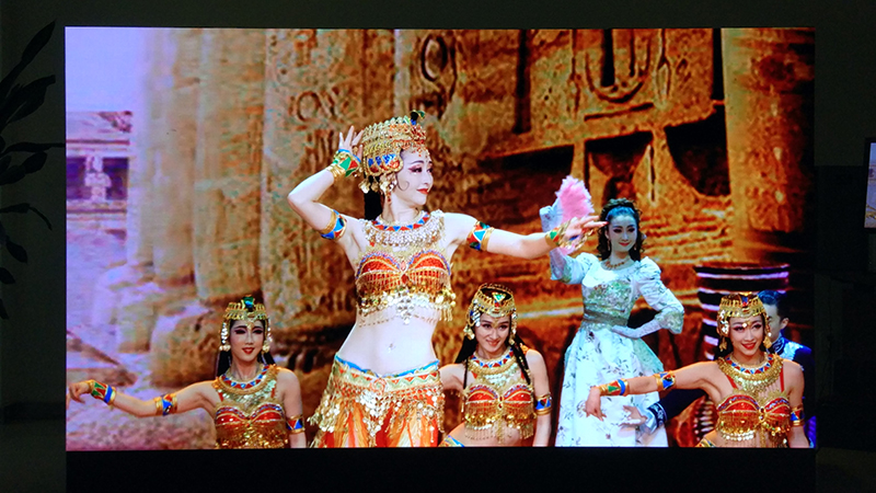 超高对比度,得益于对黑色的严格控制。另外,这是由6×3一共18个显示单元拼接而成的大屏,你根本找不到接缝。更值得一提的是,其1000000:1的超高对比度,得益于对黑色的严格控制。前面已经提到,黑色部分占所有像素点面积的99%以上。因此当其显示黑色画面时,效果与关机无异。此外,可视角度同样优异,即使从侧面看,屏幕也没有任何色彩和对比度的损失。而且近距离观看,根本察觉不到那1.2mm的间距。