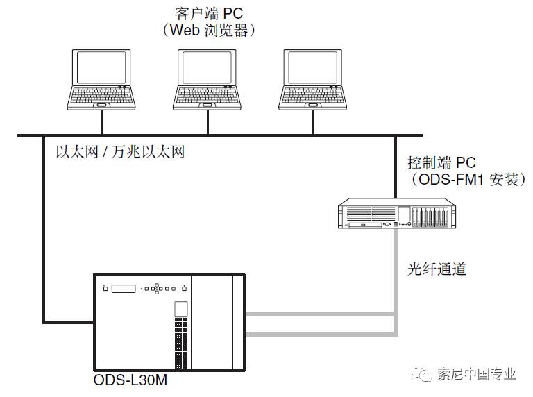 光盘库硬件连接示意图 客户端PC可以是非编主机或其他主机